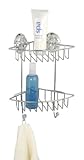 #3: Étagère d'angle Bari Super-Loc fixer sans percer, 2 corbeilles, 2 crochets, chrome, 22,5 x 27 x 16 cm
