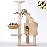 Happypet® CAT017 Arbre à chat Griffoir Grattoir 120cm Beige + motif pâtes de chat