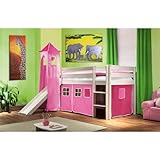 #8: Lit surélevé d'enfant avec tour et toboggan bois de pin massif blanc - Rose - SHB/15/1032