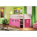 #8: Lit surélevé d'enfants en bois de pin massif blanc - Rose - SHB/13/1034