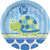 #3: 8 assiettes grandes en carton Tortue 1er anniversaire garçon "Happy 1st Birthday"