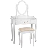 Jago - Coiffeuse - SMKT05 - avec tabouret, tiroir et miroir pivotant - 135 x 80 x 40 cm