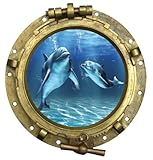 #5: Sticker Trompe l oeil Hublot Dauphins vue sous marine 20x20cm