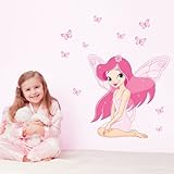 #6: Jolie fée rose et papillons en dessin animé sticker mural